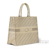 Christian Dior Ecru and Gray Dior Oblique Embroidery Booktote