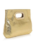 Michael Kors Metallic Gold Lizard Embossed Leather Hand Bag