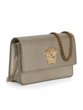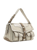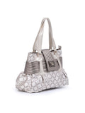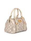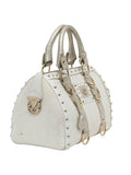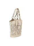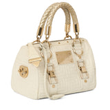 Versace Metallic Gold/Cream Signature Canvas And Leather Snap Out Of It Satchel