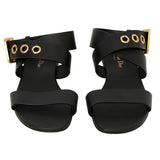 Christian Dior Black Leather Ankle Strap Flat Sandals Size: 38.5
