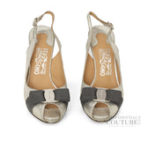 Salvatore Ferragamo Vara Metallic Silver Bow Peep-Toe Slingback Heels US 5 | UK 2 | EU 35.5