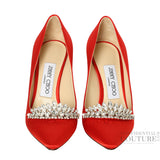 Jimmy Choo Romy 85 Red Satin/ Crystal Pumps- EU 35