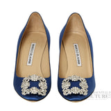 Manolo Blahnik Mid Blue Satin Jeweled Buckle Hangisi Pumps- EU 34.5