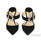 Jimmy Choo Black Martha Suede Crystal Embellished Buckle EU 37 | UK 4 | US 7