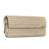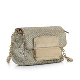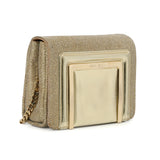 Dolce & Gabbana Gold Soft Ruffle Foiled Leather Clutch With Chain Strap
