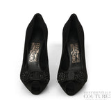 Salvatore Ferragamo Suede Vara Bow Black Kitten Pumps 5| EU 35.5 | IT 35.5 | UK 2 | US 5