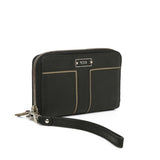 Tumi Black Leather Wristlet is a sleek zip-top wallet with a removable wrist strap, card slots, and a slim profile—perfect for travel or daily essentials.