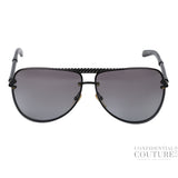 Shop Pre-Loved Bottega Veneta B.V.129/S Black Intrecciato Aviator Sunglasses, an elegant and modern sunglasses frame from Bottega Veneta. This stylish pair of aviators comes with black metal details and black translucent lenses. The Bottega Veneta B.V.129/S Black Intrecciato Aviator Sunglasses feature discreet details of an Intrecciato pattern, which gives it a stylish accent that still looks minimalist. A stylish accessory item that embodies Bottega Veneta's passion for craftsmanship and timeless style.