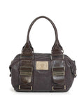This stunning Versace purse is made of supple leather. Both the plaque and Bit embellishments are on the front of it. It is practical because it has two handles and a big interior.
