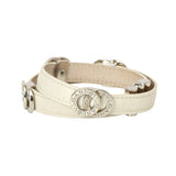 This pre-loved Bvlgari White Leather Interlocking Circles Silver Double Wrap Bracelet is a stunning expression of contemporary luxury. Crafted from smooth white leather, it wraps twice elegantly around the wrist, adding a touch of understated sophistication. The design is finished with polished silver-tone interlocking circles engraved with the BVLGARI logo — symbolizing infinite elegance and timeless allure. Perfect for adding a chic, elevated touch to any ensemble.