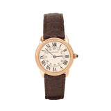 This pre-loved Cartier Ronde De Louis 30mm Watch captures the timeless elegance of Cartier’s classic craftsmanship. Designed with an 18k gold round case and a champagne gold dial adorned with black Roman numerals, it features the Maison’s signature blue cabochon crown and sleek red leather strap that adds a bold, refined touch. The minimalist design and expert detailing make it a distinguished accessory for every occasion, balancing heritage and modern grace in true Cartier fashion.