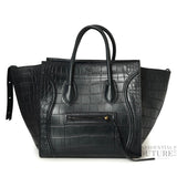 Shop pre-loved Celine Medium Phantom Luggage Tote crafted in navy blue croc-embossed leather for a sophisticated textured finish. The structured design features top handles, a spacious interior, and a sleek silhouette that embodies Celine’s minimalist yet luxurious aesthetic. Perfect for everyday use or professional settings, this tote combines functionality with refined craftsmanship, making it a statement accessory for a polished wardrobe.