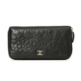 Black Camellia Embossed Zip Around Walle