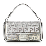Shop pre-loved Fendi Baguette Silver PVC & Leather Crossbody Bag, an exquisite blend of glamour and contemporary Fendi design. Crafted from silver PVC and smooth leather, the bag is adorned with glittering sequin embellishments that create a luminous finish from every angle. Featuring the iconic Baguette silhouette, it comes with silver-tone hardware and a detachable crossbody strap, offering both elegance and versatility. A true statement piece, this bag perfectly embodies Fendi’s signature play between luxury craftsmanship and modern sparkle.