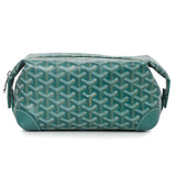 Shop pre-loved Goyard Green Bowling 25 Toiletry Bag, crafted in the brand’s iconic green Goyardine canvas with leather trims and silver-tone hardware. Designed for refined organization, this toiletry bag combines classic craftsmanship with practicality — perfect for travel or daily use. A sophisticated statement of luxury and heritage. 100% Authentic.