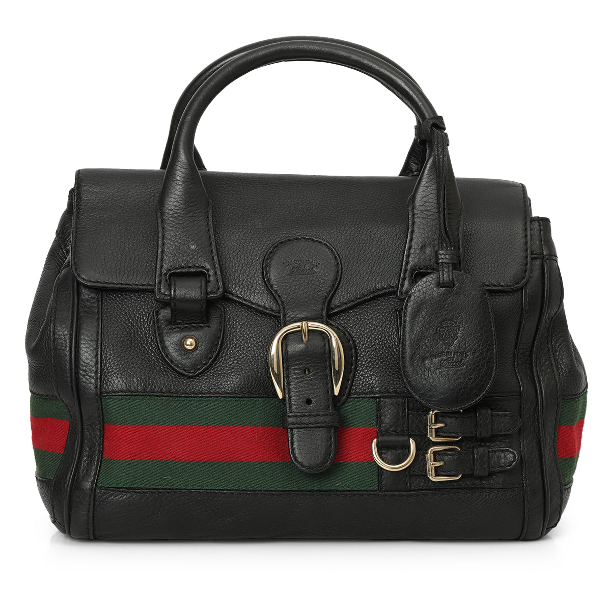 Product Name: Gucci Black Leather Heritage Web Satchel Medium