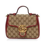 Brown Mini GG Marmont Canvas Satchel Marrone Rosso Beige