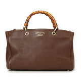 Brown Pebbled Leather Bamboo Top Handle Medium Tote Bag