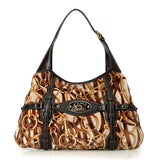 Product Name: Gucci Dark Brown/Beige Leather & Horsebit Print Velvet Brit Hobo