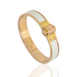 Narrow Hinged Blanc Enamel Bracelet S 16 cms