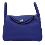 Shop pre-loved Hermès Lindy 30 in Clemence leather in Royal Bleu — crafted from supple, lightly grained taurillon Clemence leather that offers a soft hand feel and relaxed, slouchy elegance. The rich Royal Bleu tone highlights the bag’s curved silhouette, while the design features dual rolled top handles. The Lindy’s distinctive structure includes a central compartment accessible from both sides through dual zip closures with clasped interlocking pull tabs, anchored at the center by a signature Hermès turn-lock. Palladium-plated hardware enhances the cool contrast against the leather, adding a refined and contemporary touch. The interior features two slip pockets on the exterior-facing panels, paired with two interior pockets, offering effortless organization without compromising the bag’s understated sophistication. A timeless Hermès model designed for everyday ease with elevated Parisian craftsmanship.