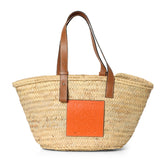 Shop pre-loved Loewe Basket Medium Tote handcrafted in beige raffia, showcasing the brand’s signature artisanal craftsmanship. The tote is elevated with orange leather accents, adding a bold contrast to the natural woven body. Designed with an open-top silhouette and sturdy top handles, it offers ample space for everyday essentials while maintaining a relaxed yet refined aesthetic. A versatile Loewe classic, perfect for warm-weather styling and effortless luxury.