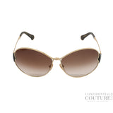 Shop Pre-Loved Louis Vuitton Gold Metal Frame Daisy Sunglasses-Z0262U. The Louis Vuitton Daisy sunglasses feature a brown metal frame with gold hardware, exuding luxury and sophistication. The One Size feature of these sunglasses ensures that they can be worn by everyone. The craftsmanship and lack of prominent branding speak volumes for the luxury of these sunglasses.