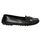 Shop pre-loved Louis Vuitton Signature Logo loafers crafted in glossy black patent leather, featuring the iconic gold-tone LV logo on the front. These elegant flats have a rounded toe and durable flat sole, combining comfort with a polished, sophisticated finish.