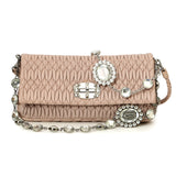 Its compact design is perfect for carrying essentials such as a phone, cards, keys, and small beauty items, while the detachable strap allows for versatile styling as a shoulder or crossbody bag. Lightweight, stylish, and timeless, the Crystal Cloquè Small Bag is ideal for both everyday outings and special occasions.