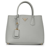 The Prada Metal Triangle Double Bag Medium is a stylish and adaptable piece that mixes Prada's typical elegance with current design elements. This sumptuous bag offers both elegance and utility, making it an excellent complement to any fashion-forward outfit.