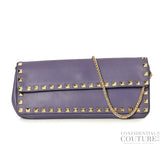 Shop Pre-Loved Valentino Garavani Purple Rockstud Wallet on Chain Bag, a stylish accessories piece that combines classic Valentino fashion with a strong sense of edginess. Made from high-quality purple leather, this small designer handbag is highlighted with the signature Rockstuds pattern along with gold-toned metal hardware. With a designer wallet-like lining as well as a chain strap that can be detached easily, this designer accessories piece is a stylish must-have that can be worn on any occasion – from casual daily jaunts to more elaborate nighttime events.