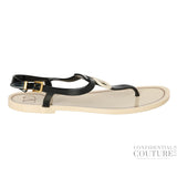 Shop Pre-Loved Valentino Garavani Thong Sanals in EU Size 38. This piece is designed in a pure white color. The sandals shows a perfect contrast of black straps for wearing. They feature golden and off-white hardware. They look very stylish and ideal for wearing during the warmer months of the year. This is a perfect piece of luxury crafted by the house of Valentino Garavani.