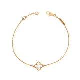 Van Cleef & Arpels Sweet Alhambra Bracelet features a delicate clover motif in 18K gold, symbolizing luck and elegance in a refined everyday design.